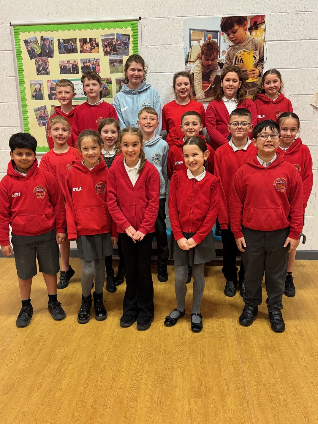 Here are our milk monitors. They ensure that all of the children who are on the milk register receive fresh milk every day.